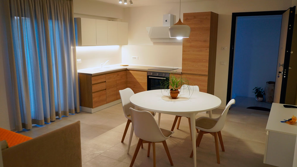 Il nostro appartamento tipo mansarda è di circa mq. 40 ed è ideale per coppie che voglio godersi la loro riservatezza e rilassarsi sull'ampio terrazzo dal quale si vede il mare. L'accogliente soggiorno che dà sul terrazzo ha un comodo angolo cottura con piastra ad induzione a quattro fuochi, frigo grande con congelatore, forno elettrico e lavastoviglie.