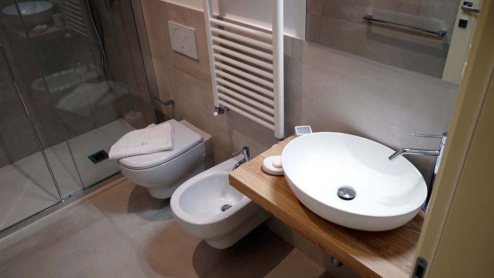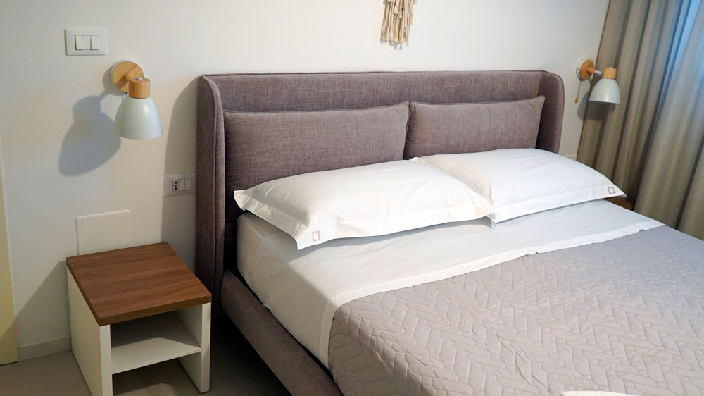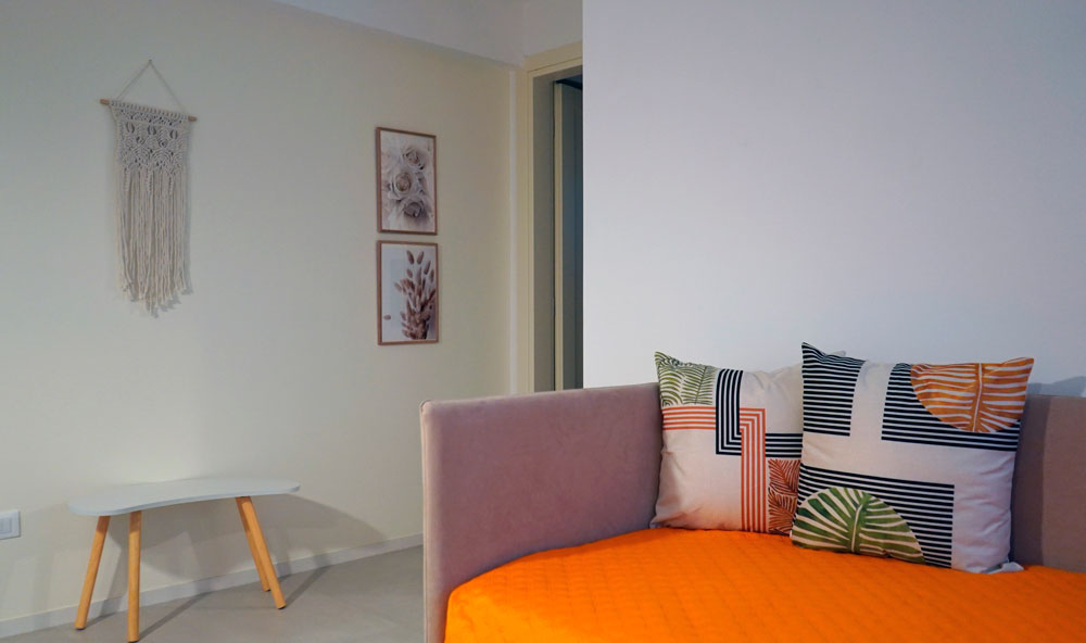 L'angolo living con divano all'occorrenza può diventare anche un posto letto, mentre la “romantica” camera matrimoniale gode di un'ampia finestra che dà sulla corte interna.